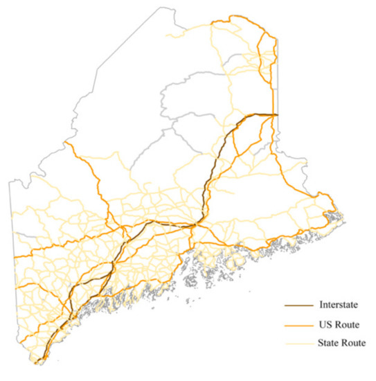 Distribution of road types in Maine.
