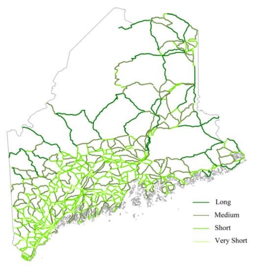 Distribution of road length in Maine.
