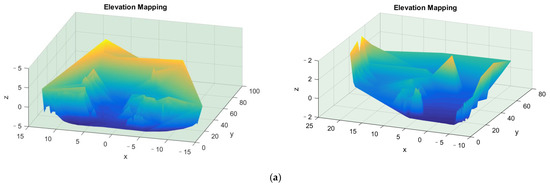 The physical meaning of the aforementioned criteria is actually to judge the upward and downward concave–convex characteristics of the spectral subgraph, i.e., whether the current point is inside the subgraph or outside the subgraph, and to judge whether the elevation values of adjacent points are visible according to the geometry calculation. Under the premise of controlling the smoothness of the Laplacian matrix, step 1 controls whether the weighted value of the weighted Laplacian matrix corresponding to the calculation point and adjacent points is too large compared to the visible area radius of the line-of-sight. Once it is too large, this subgraph likely contains connected viewpoints in the space of the background environment far away from each other. Steps 2 and 4 control the spatial position of the current operating point in this subgraph, i.e., remove the spectral calculation composed of inhomogeneous finite elements so that it will not operate at the concave boundary. The advantage of this is to preserve the cohesive targets in the scene as much as possible. Steps 5 and 7 determine the intervisibility of the finite element mesh by the concave–convex centripetal properties of the subgraph composed of the current operating point (i.e., the dispersion) and the elevation values of neighboring nodes. The centripetal heart here is the meta-viewpoint. The more discrete the current operation point and the meta-viewpoint are, the more the concave–convex centrality of the subgraph deviates, and the more the finite element mesh will bulge farther.