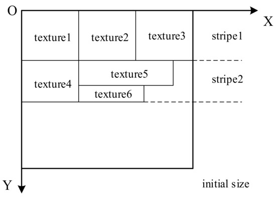 The lowest horizontal search algorithm refers to updating the horizontal line to create a strip and insert the textures into the strip, as shown in Figure 2. Considering the limitation of the maximum texture size, the algorithm is improved to pack textures into one or more atlases adaptively.