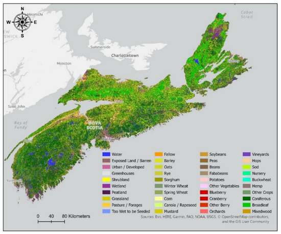 Agriculture and Agri-Food Canada Crop Inventory Map of Nova Scotia in 2019.