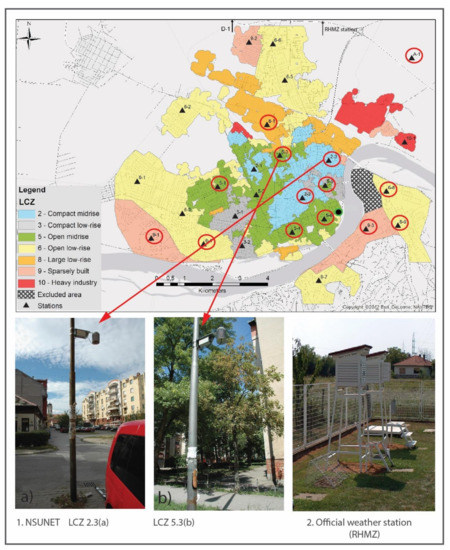 - Savić, S.; Milošević, D.; Lazić, L.; Marković, V.; Arsenović, D.; Pavić, D. Classifying urban meteorological stations sites by’local climate zones’: Preliminary results for the city of Novi Sad (Serbia). Geogr. Pannonica 2013, 17, 60–68. [Google Scholar] [CrossRef] [Green Version]