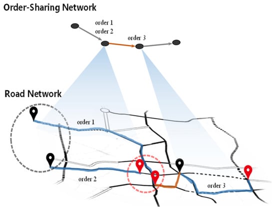 The sharing graph is a coarse-grained representation of taxi travel network with the order trajectory corresponding to a node in the upper-level network.