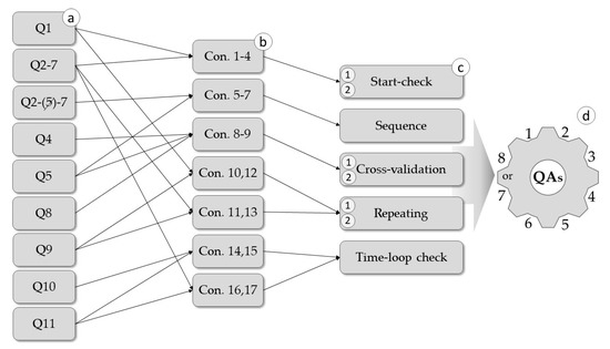 The proposed logic-based QA framework for APSM has a four-tier structure, starting with a set of logically related questions, the basis of the quality assurance (QA) mechanisms, which in various configurations form five mechanisms and then QA systems (Figure 2).