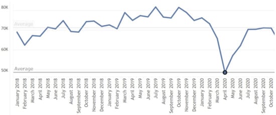 Monthly crime counts in London from January 2018 to October 2020 (source: Metropolitan Police).