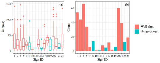 - The wall signs had a higher perception rate than the hanging signs, but the average perception time of the hanging signs was lower.