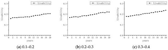 In Scenario 2, we focused on the impact of the advancement of urbanization on the safety and livability of cities. The advancement of urbanization means an increase in the migrant population. Therefore, in this scenario, we only adjusted the parameter of the growth rate of the migrant population, and the settings of the remaining parameters remained exactly the same as those in Scenario 1. To observe the impacts of different growth rates of immigrants on changes in urban safety and livability, we conducted multiple experiments. We set the fluctuation range of the growth rate of the migrant population to 5–10%, 10–15%, and 5–15% and conducted three experiments to observe the experimental results.