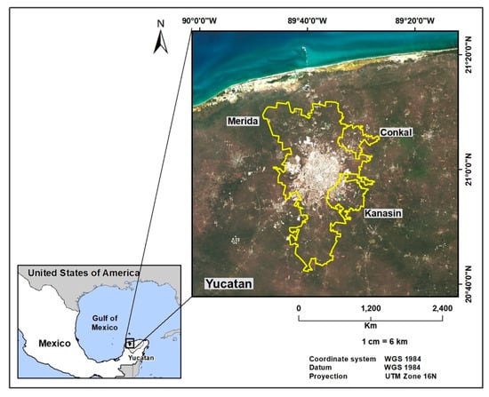 In Mexico, one of the regions with the highest population and urban growth has been the Yucatán Peninsula, particularly Mérida City. In the last three decades, Mérida has quadrupled its population—in 1970 there were 269,000, in 2020 there are estimated to be 1,161,000 people—which has significantly increased the urban area. In addition, in recent years Mérida has been awarded, by various means, as one of the best cities in the world to live (https://www.a-nah.com/article/why-is-merida-the-best-city-in-the-world accessed on 2 June 2020; https://www.eluniversal.com.mx/english/merida-declared-best-city-world accessed on 2 June 2020). Its high ecological, scenic, and cultural value associated with the presence of the Mayan culture, as well as its proximity to the coastal area, archaeological sites, cenotes, and caves, make it an attractive housing destination, which has increased the demand for housing and the inherent growth of the urban area. However, this population growth, as well as poor urban landscape planning, can put the quality of life, as well as the ecosystem functioning of the region, at risk.