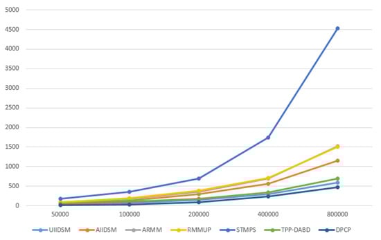 Unlike the other privacy-preserving algorithms, the high data utility and privacy protection degree in our TPP-DABD were achieved without trading off too much time cost. The time complexity of the TPP-DABD was still acceptable for practical applications.