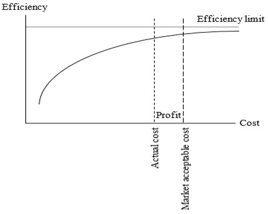 The computer used for the empirical tests was a desktop PC running Microsoft Windows 10, with an Intel Core i5-9400F CPU at 2.9 GHZ and 32 GB of RAM. Figure 6 shows the trade-off between efficiency and cost [39]. First, when the data structure and algorithm procedures are the same, marginal efficiency improvements can be realized by improving the hardware and software. After the hardware and software are upgraded to a certain extent, the marginal efficiency increase will gradually decrease. The efficiency limit is shown in Figure 6. When determining the investment costs of hardware and software, the actual cost, the market acceptable cost, and the profit should be considered. The best option may not be to upgrade only the hardware and software.