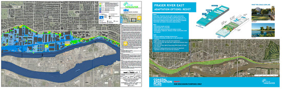 - City of Vancouver. Coastal Adaptation Plan-Fraser River East Current Conditions; City of Vancouver: Vancouver, BC, Canada, 2018. [Google Scholar]
