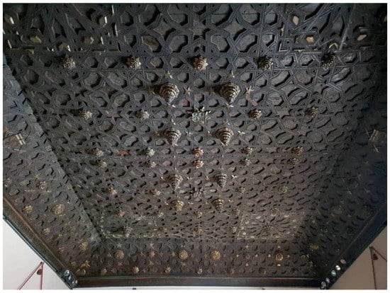 - Gámiz-Gordo, A.; Ferrer-Pérez-Blanco, I.; Reinoso-Gordo, J.F. The Pavilions at the Alhambra’s Court of the Lions: Graphic Analysis of Muqarnas. Sustainability 2020, 12, 6556. [Google Scholar] [CrossRef]