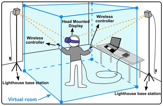 Figure 4. Equipment and room installation progress with HTC goggles (based on https:www.vive.com, accessed on 20 February 2021).