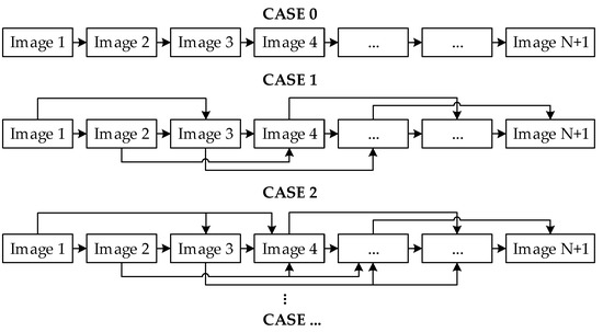 However, the combination of image pairs plays a crucial role in TS-InSAR monitoring. On the one hand, if each image acquired date is only connected to the adjacent image date (see the CASE 0 in Figure 2), there is no redundant observation and the estimated result may be inaccurate. On the other hand, if all interferograms are freely combined, there will be interferograms from N + 1 images. This combination strategy of freely connected network increases a large number of redundant observations, which can be applicable to a research area with low coherence. Nevertheless, the huge amount of interferograms will greatly reduce the computing efficiency. Moreover, the low-quality interferograms will affect the accuracy of time-series results.