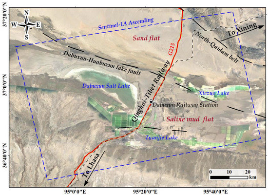 Qaidam Basin is located in the northern section of the Qinghai-Tibet Plateau (QTP) in China. A large number of salt lakes are distributed in this closed inland basin, which is surrounded by the Altun Mountains in the northwest, Qilian Mountains in the northeast and Kunlun Mountains in the south [36]. As shown in Figure 3, Dabuxun Salt Lake, Xiezuo Lake and Tuanjie Lake are the three subparts of Qarhan Salt Lake, located in the southeast of the Qaidam Basin [37,38].