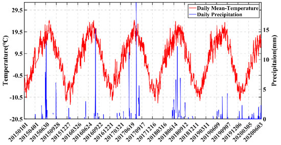 The daily temperature and precipitation data of the Golmud station (36.417° N, 94.9° E) from January 2015 to June 2020.