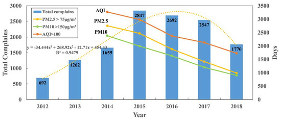 - The air quality of Shandong Province improved significantly between 2014 and 2018, and the number of public complaints and the emotional intensity of negative complaints also showed a downward trend.