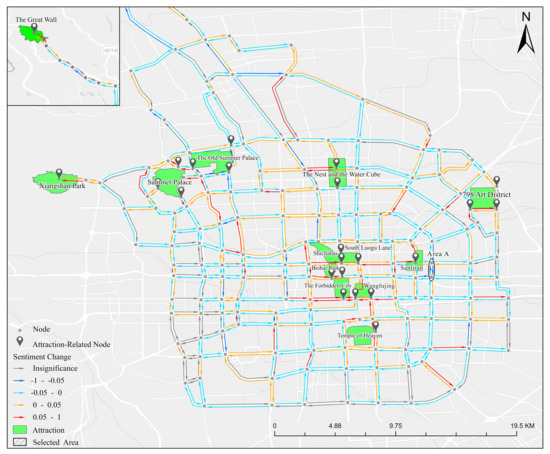 4.3. Sentiment Visualization of the Tourist Flow Network