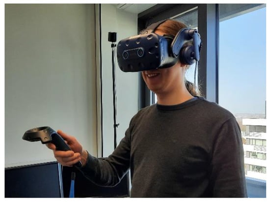 To implement VR support, the SteamVR asset developed by Valve was used. This asset enables the use of a great variety of VR HMDs (e.g., HTC Vive, HTC Vive Pro, Valve Index) and controllers in Unity projects. It also provides room scale tracking in Unity Projects when a compatible HMD is used. Additionally, SteamVR adds 3D models of the used controllers and hand models to the virtual environment. The fingers of the hand models move based on controller input.
