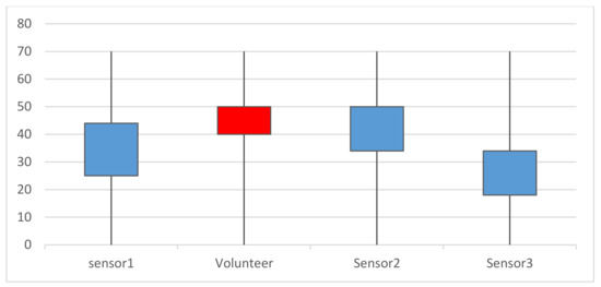 Considering sensors as a reference for assessing VGI quality may cause unreliable results if sensor observations are corrupted. The observations corruption sources can be random, systematic, or blunders. Corrupted observations have an unpredictable value by the sensor, which causes random and blunder errors [52]. These errors generate outliers in observations. Then, we compared the corrupted observation data point with the last three data points for outlier detection [53]. Outliers are observations with a significant difference from other values, which indicates failure in observations [54]. However, these changes should be considered as anomalies if the difference shows ups as a shift in values [52]. In this paper, every corrupted data is firstly assumed as an outlier unless three new observations have similar values with the corrupted data [53]. Therefore, the outlier detection is run by every new sensor observation. If observations have been considered as an anomaly, all the following stages will be repeated to assess the quality with new observations.