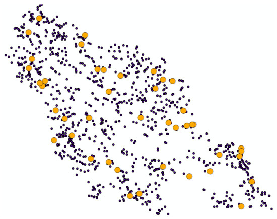 - Okabe, A. Spatial Tessellations: Concepts and Applications of Voronoi Diagrams, with a Foreword by DG Kendall; Wiley Series in Probability and Statistics; Wiley: Chichester, England, 2000. [Google Scholar]