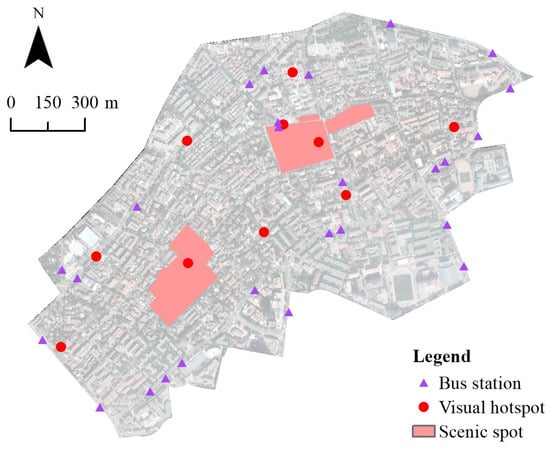 Bus stations, visual hotspots, and scenic spots.