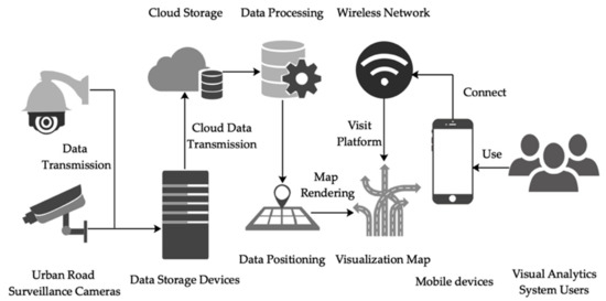 With the advent of the era of big data, there has been an explosion in the amount of data in all industries, including transportation. Intelligent transportation system (ITS) is an effective means to improve the performance of urban traffic systems [1]. In recent years, an increasing number of traffic sensing devices (such as video surveillance cameras, loop coils, microwave detectors, etc.) have been deployed on urban roads. These traffic sensing devices collect a great quantity of traffic data, making the intelligent transportation system gradually evolve from technology-driven to data-driven [2,3,4]. The urban road video surveillance camera system generates billions of vehicles monitoring records every year, which contain massive spatio-temporal information of vehicles [5]. These data are stored for an additional 15 days or discarded directly [6]. Road video surveillance camera systems and related data storage devices are expensive to purchase and maintain, but the value of the data they generate has not been effectively utilized [7]. Guiyang is an important regional center city in southwest China, its road video surveillance camera system records more than tens of millions of license plate data every day. Mining urban residents’ traffic characters and travel rules from such an enormous amount of public travel data is of great reference significance for relevant government departments to optimize the road traffic network and formulate involved policies and regulations [8]. On the other hand, display the road traffic status in a more clear and visual friendly visualization map by deep processing of these abstract data resources can greatly improve the utilization efficiency of traffic data, help people intuitively understand urban road traffic conditions and efficiently plan the travel route, which further eases the current urban traffic pressure and traffic congestion. Consequently, it is essential to develop a visualization method for analysis of spatial and temporal characters of urban road traffic.