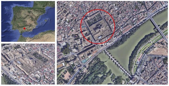 A third stage began around 1815, after restoring the entrance arch to the mihrab. In the second half of the 19th century, the altarpiece in the Villaviciosa Chapel was removed and its original skylight was revealed. Between 1864 and 1884, the lime coating was removed. In 1887, the architect Ricardo Velázquez Bosco took over the building conservation, and since then, architectural pieces from different periods have been recovered []. This monument was inscribed on the World Heritage List in 1984 and the property was extended to include part of the Historic Centre in 1994 [] (Figure 1, Figure 2 and Figure 3).