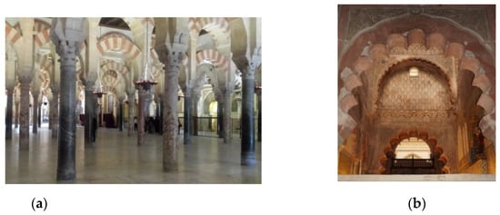 Over the centuries, the Mosque-Cathedral of Cordoba has been transformed and adapted to the needs of each period, without losing the essential features of its architectural identity []. In its long history, three major stages can be considered, which are outlined below.