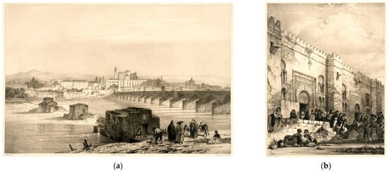 Studies on the images of Girault de Prangey in Andalusia are scarce. Some comments about his views of Granada in a book by Galera-Andreu on the romantic image of the Alhambra in the 19th century should be highlighted [], as well as those in a book by Orihuela-Uzal and Tito-Rojo on the Casas del Chapiz []; in an article by Orihuela-Uzal about a hammam []; and in another recent one by Sánchez-Gómez and Piñar-Samos []. Prangey’s views of Cordoba have not been studied until now.