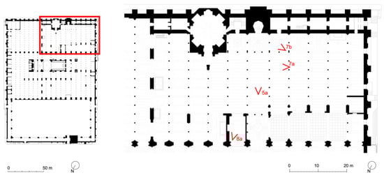 The details mentioned above were used in another plate including a schematic plan of the building in Islamic times (Figure 5b). It marks the perspective viewpoints that appear in other plates, all of which were produced in the Al-Hakam II extension, one of the most architecturally interesting parts of the monument.