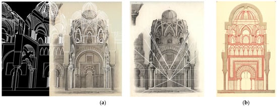 There is also no research on the documentary reliability of the Mosque-Cathedral drawings prior to the appearance of photographs around 1850. It is only worth mentioning a study by Almagro-Gorbea on the precision of plans preserved in the Real Academia de Bellas Artes de San Fernando in Madrid [], wich does not include anything on perspectives.