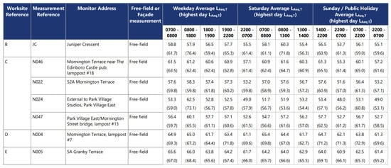 - HS2. Construction noise and vibration Monthly Report—May 2020—London Borough of Camden. Available online: https://assets.publishing.service.gov.uk/government/uploads/system/uploads/attachment_data/file/899113/Camden_Noise_Monthly_Report_May2020.pdf (accessed on 2 August 2020).