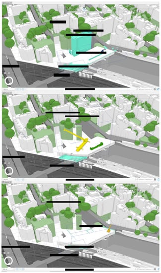 One of the issues highlighted during the discussions related to the level of expertise required to access and interact with the 4D data in Synchro. It was felt that the opportunity to interact with the data via a user-friendly web or desktop interface would be very valuable to decision makers (who do not have Synchro software expertise). They could then explore the data as needed during meetings (note that, in this context, the process of democratizing the data does not refer to opening it up to the public, as some of the data is commercially sensitive). To ‘democratize’ the data in this way, options for 3D and 4D visualisation of the resulting converted data were explored on two platforms—ArcGIS Pro https://www.esri.com/en-us/arcgis/products/arcgis-pro/resources (accessed on 20 October 2020), selected to allow GIS specialists to work on data management, editing, querying and analytics and CesiumJS https://cesium.com/cesiumjs/ (accessed on 20 October 2020), an open-source JavaScript library for 3D globes and maps which reads data in GeoJSON format and as 3D tiles (amongst others).