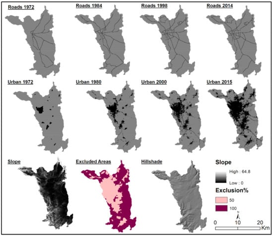 | 1980 primary roads network | Derived from high-resolution topographic map. Retrieved from: https://daahl.ucsd.edu/DAAHL/ (accessed on 1 June 2017) |