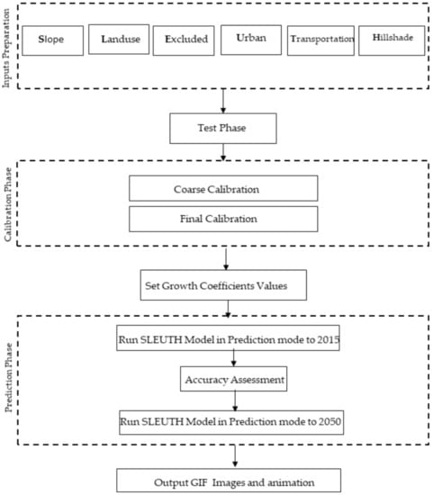 - Jantz, C.; Goetz, S.; Donato, D.; Claggett, P. Designing and implementing a regional urban modeling system using the SLEUTH cellular urban model. Comput. Environ. Urban Syst. 2010, 34, 1–16. [Google Scholar] [CrossRef]