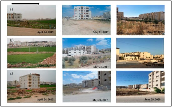 - Al Rawashdeh, S.; Saleh, B. Satellite monitoring of urban spatial growth in the Amman area, Jordan. J. Urban Plan. Dev. 2006, 132, 211–216. [Google Scholar] [CrossRef]