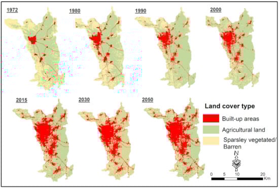 Jawarneh, R.N. Modeling Past, Present, and Future Urban Growth Impacts on Primary Agricultural Land in Greater Irbid Municipality, Jordan Using SLEUTH (1972–2050). ISPRS Int. J. Geo-Inf. 2021, 10, 212. https://doi.org/10.3390/ijgi10040212