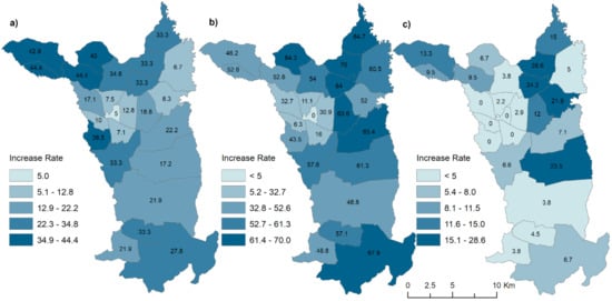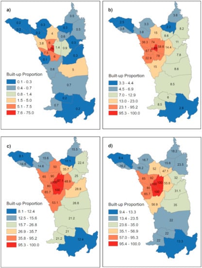 3.2.2. Urban Development Change at District Level (1972–2050)