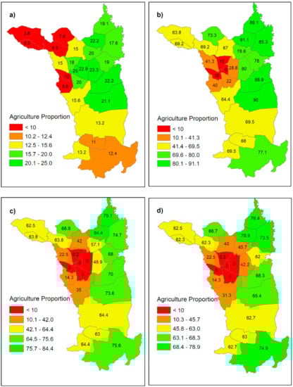 3.2.3. Agriculture Change at District Level (1972–2050)