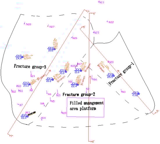 The reasons for the formation of fracture group 3 were the settlement of the platform in the management area that compressed the surrounding area (or the foot of the slope), resulting in the uplift of the ground in the upper and middle parts of the slope leading to the occurrence of bulging (tension) fractures.