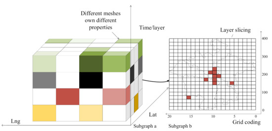 The study area is divided into regular grids and encoded according to latitude and longitude as shown in Figure 2b. Compared with the subjectively defined macroscopic divisions of areas, such as provincial divisions, regular grids with fine resolution are more objective and more sensitive to details [29].