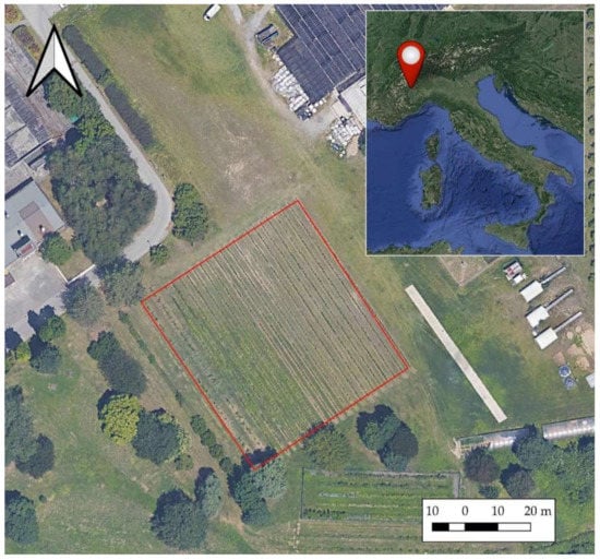 A vineyard located in Grugliasco (Northern Italy) is the test site of this work. It is located inside the University of Turin campus (Figure 1), specifically at the School of Agriculture and Veterinary Medicine in the Department of Agricultural, Forest and Food Science.
