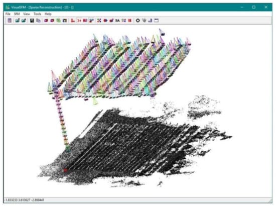 In this study, the photogrammetric process was carried out using Visual SfM [14,57] (FOSS). Several GCPs were collimated in the photos to georeference the photogrammetric block.