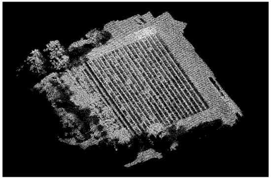 Fifteen plastic markers, used as Ground Control Points (GCPs), were placed on the ground to allow a subsequent georeferencing of the digital model. The coordinates of the centre of each target were acquired using a Real-Time Kinematic (RTK) Global Navigation Satellite System (GNSS) technique [52]. For this application, which aims, as full detail, to identify the different plants within the rows, an accuracy of about 3–4 cm was enough for the elevation model and the orthophoto.