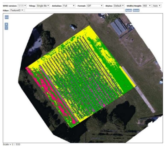 The presented solution is easily replicable by many use cases and by different stakeholders involved in various tasks concerning precision agriculture. As mentioned in [67], the integration of geomatics techniques and methods (such as remote sensing and aerial photogrammetry by different sensors) with a geographic information system could improve the resilience of modern agriculture, managing and monitoring every step (seeding, crop growth, and harvesting and production).