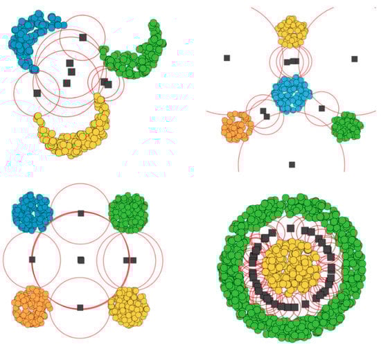 - Aurenhammer, F. Voronoi Diagrams—A Survey of a Fundamental Geometric Data Structure. ACM Comput. Surv. 1991, 23, 345–405. [Google Scholar] [CrossRef]