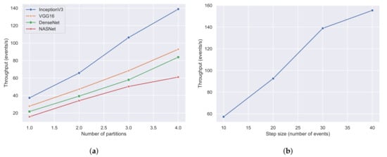 - Approximately 16,000 AIS messages are generated each second from 200,000 vessels worldwide, resulting in 46GB of data per day. In the maritime domain, only in recent years have researchers started tackling the problem of real-time stream processing with the use of AIS messages [,,,,]. To the best of our knowledge, this is the first time in the maritime domain literature that computer vision techniques have been used in real time to classify trajectories. Deep learning algorithms such as VGG16 [], InceptionV3 [], NASNetLarge [], and DenseNet201 [] are used in a distributed and streaming fashion, enabling low response times and early event detection of suspicious activities at sea;