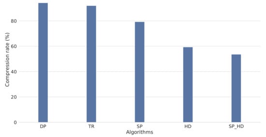 - Muckell, J.; Hwang, J.; Lawson, C.T.; Ravi, S.S. Algorithms for compressing GPS trajectory data: An empirical evaluation. In Proceedings of the 18th ACM SIGSPATIAL International Symposium on Advances in Geographic Information Systems, ACM-GIS 2010, San Jose, CA, USA, 3–5 November 2010; pp. 402–405. [Google Scholar] [CrossRef]