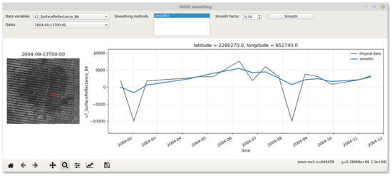 After that, it is possible to open the Landsat 7 VRT with any TATSSI interface, as Figure 5 shows for the Smoothing module for the Landsat 7 near-infrared (NIR) band time series during 2004.
